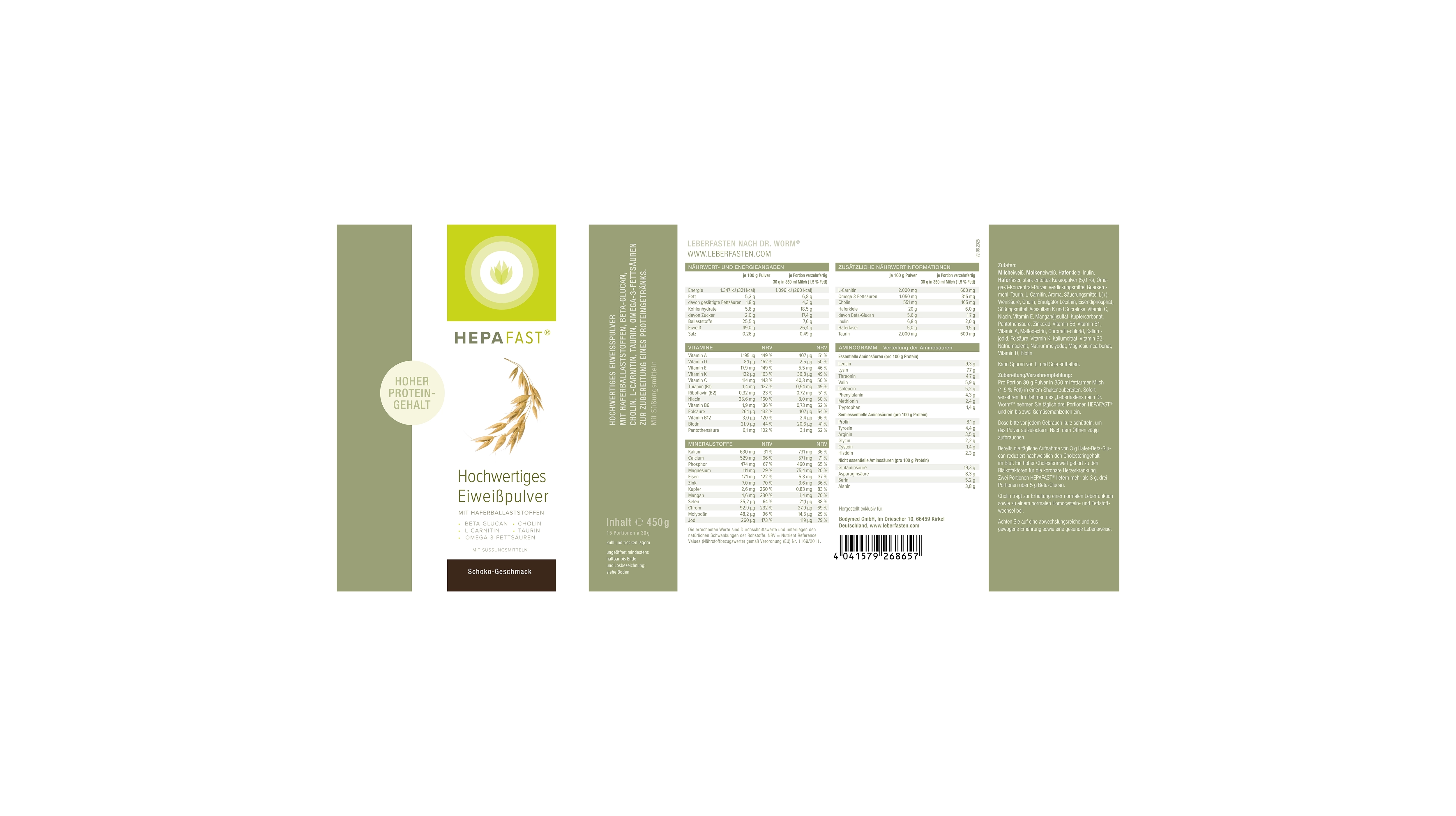 Entwickelt für Leberfasten nach Dr. Worm®, ist dieser leckere Protein-Shake nicht nur köstlich cremig, sondern liefert auch eine spezielle Rezeptur für den gezielten Abbau von Fett in der Leber und weiteren Organen. Die positiven Effekte der enthaltenen Wirkstoffe auf die Leberfunktion sowie den Fett- und Zuckerstoffwechsel sind in zahlreichen wissenschaftlichen Studien belegt. Hepafast® ist, neben der persönlichen Beratung, entscheidend für deinen Leberfasten-Erfolg und nicht mit handelsüblichen Shakes vergleichbar. Als hochwertiger Eiweiß-Shake liefert dir Hepafast® alle wichtigen Nährstoffe, die dein Körper braucht in optimaler Zusammensetzung. Daher erhältst du den hochwertigen Protein-Shake auch nur in Kombination mit einer persönlichen Beratung in deinem Bodymed-Center vor Ort oder hier im Bodymed-Webshop nach Eingabe deines persönlichen myKey-Codes, den du in deinem Bodymed-Center erhältst.